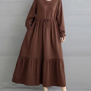 Đầm babydoll vải xô- nâu