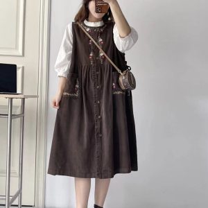 Đầm nhung yếm – Nâu đậm
