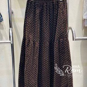 Chân váy hoa tầng thô cào – Chấm bi đen