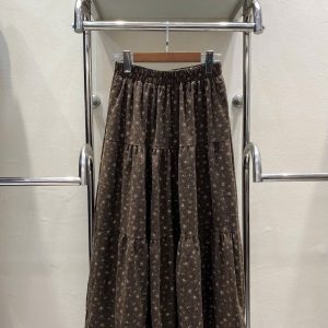 Chân váy nhung hoa nâu