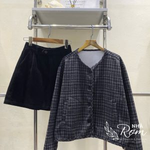 Chân váy dạ kẻ 2 màu – Nâu