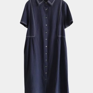 Áo sơ mi ngắn tay dây buộc – xanh