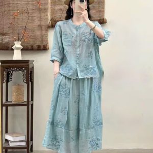 Set linen thêu – xanh dương