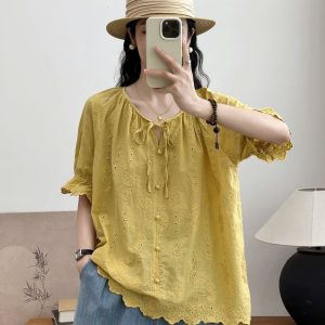 Áo sơ mi ngắn tay dây buộc – vàng