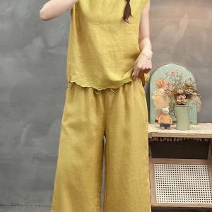 Quần linen tơ 2 lớp – vàng