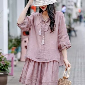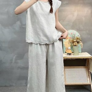 Set bộ linen viền sóng- tiêu
