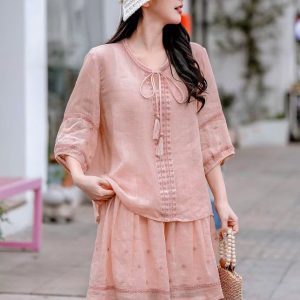 Set tay lỡ quần short- hồng