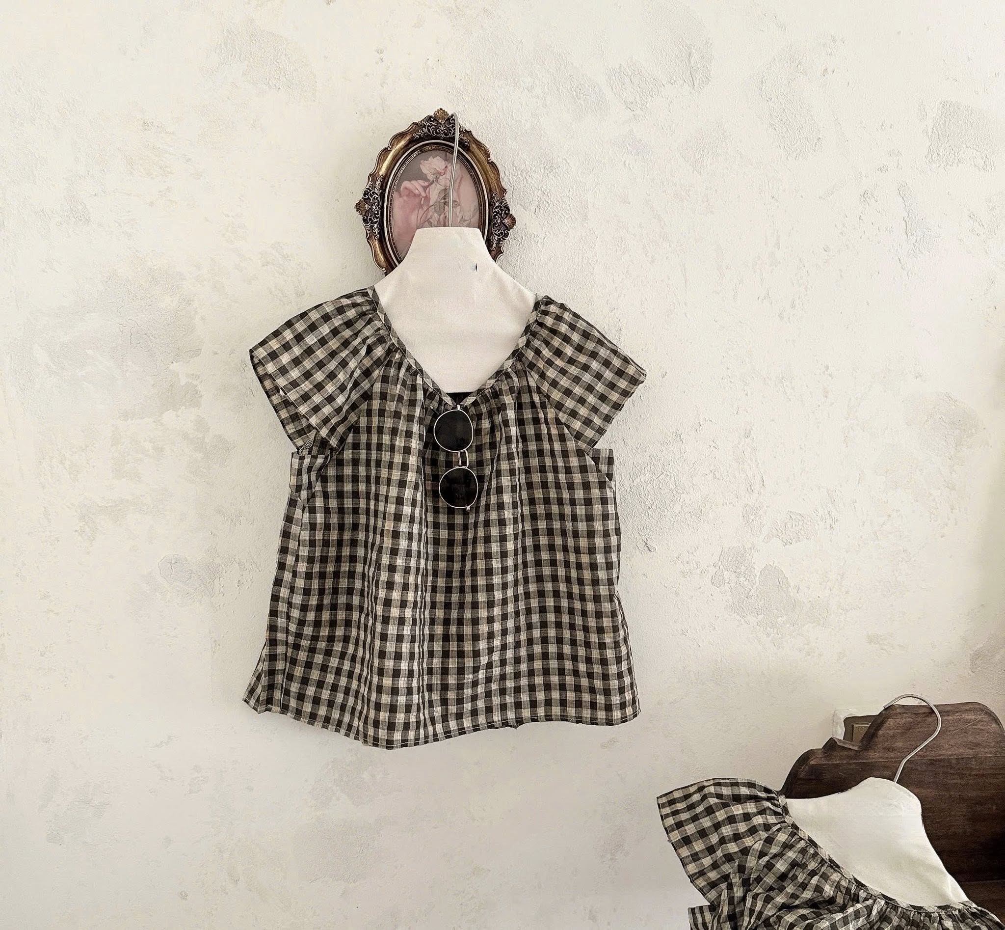 Áo cộc tay caro nâu
