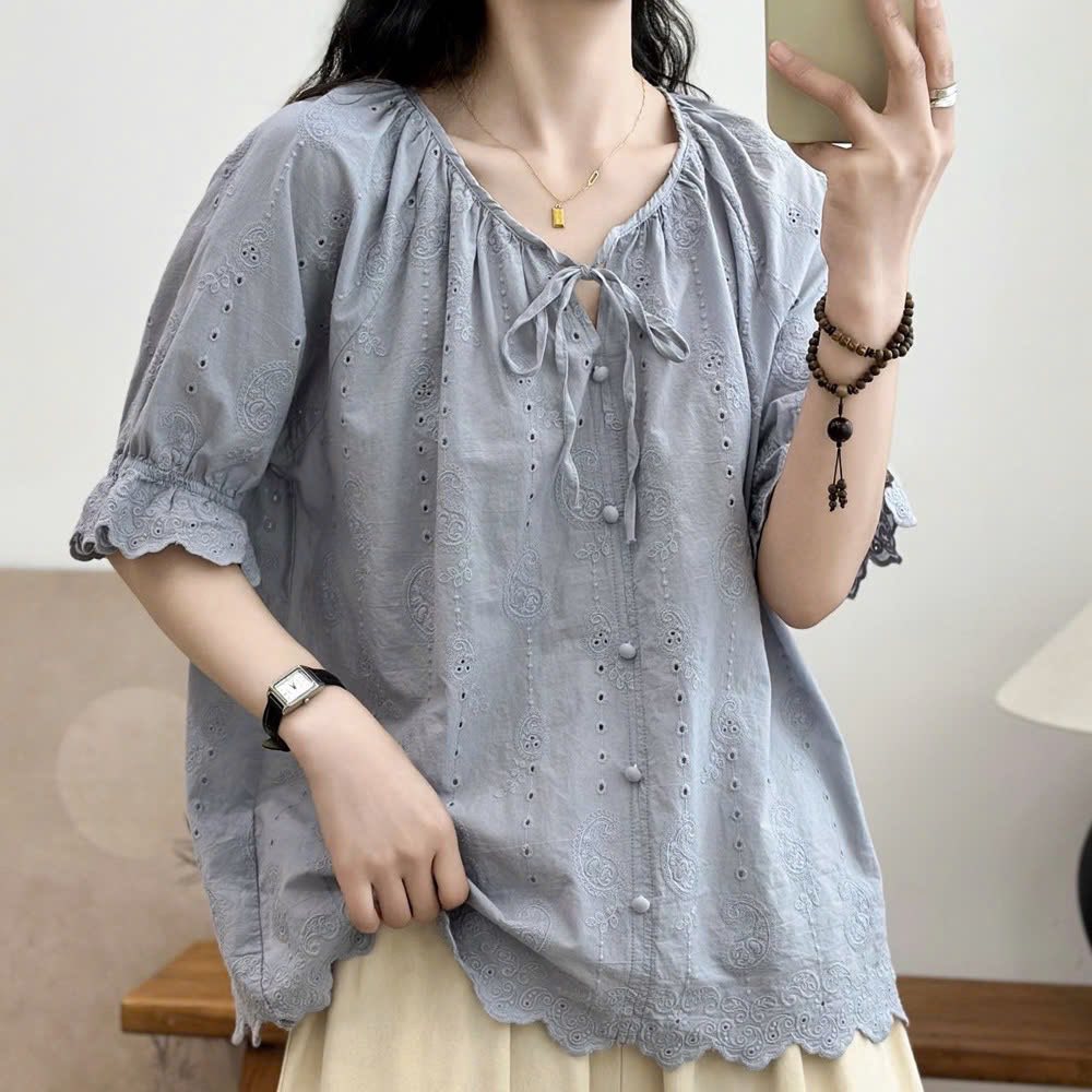 Áo sơ mi ngắn tay dây buộc – xanh