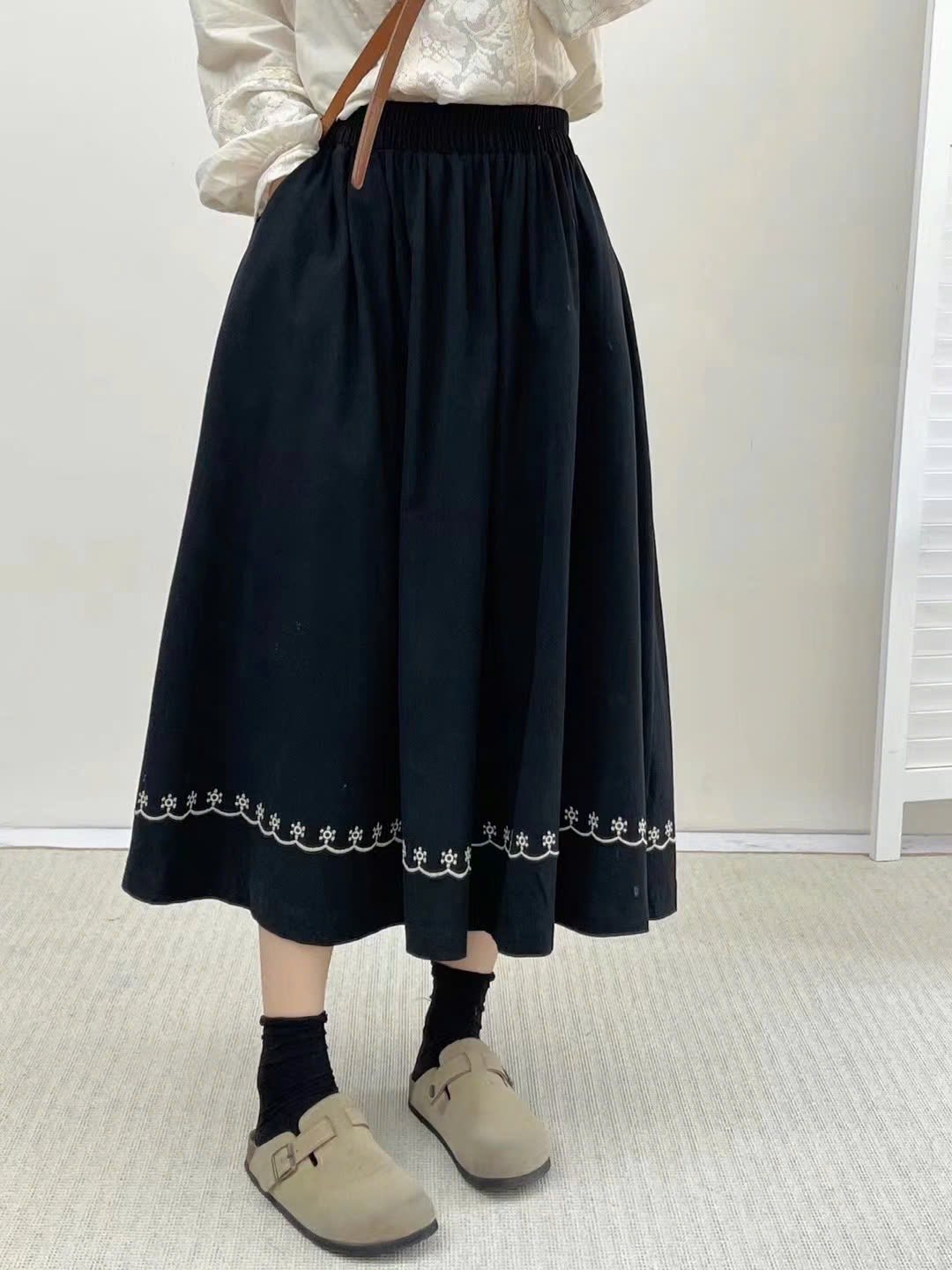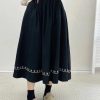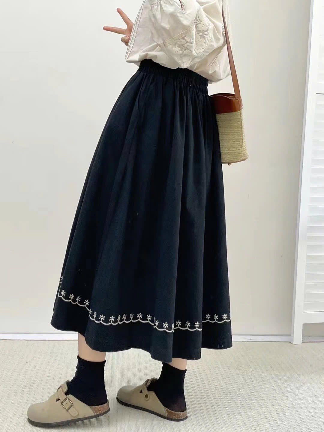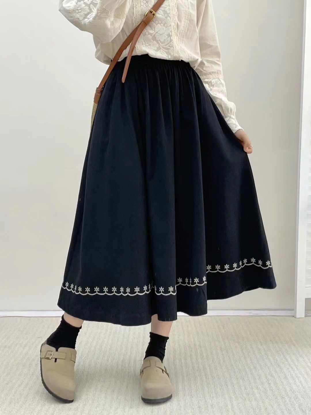 Chân váy xòe thêu viền – Đen